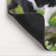 Eine niedliche Katze, ein Tuxedo-Muster schwarz-weiß Bicolor, europäische Kurzhaar, der auf einem Baumzweig in einem Garten mit blühenden Sonnenblumen spaziert. Katzen haben ein außergewöhnliches Gefühl von Ausgeglichenheit und erreichen ein würdevolles Gleichgewicht. Foto von Katho Menden aufgenommen. Dieses Mousepad ist eine Geschenkidee für Katzenliebhaber.