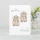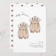 Farbenfrohe Babybekleidung Watercolor. In Person Dusche Einladung. Weißer Hintergrund. Zwei Jungs. hellbraun.