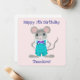 Eine hübsche, lustige, niedliche und sehr elegante kleine Maus mit schönen Overalls und einer Bogen-Krawatte wünscht Ihrem Kleinen einen guten Geburtstag. Es wird die Kinder und auch die Erwachsenen bezaubern. Alle Texte sind anpassbar.