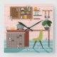 Niedliche und farbenfrohe Retro Küche Quadratische Wanduhr