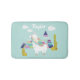 Niedliche und farbenfrohe Wüste Alpaca Personalisierte Badematte | Die bunte Badematte mit anmutigen Illustrationen eines Alpakas mit bunten Pyramiden, Wolken und Sukkulenten. Diese individuell gestaltbare Badematte ist ein personalisiertes Geschenk für Babyduschen und Kindergeburtstage.