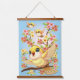 Niedliche und glückliche Vögel unter Frühlingsblum Wandteppich Mit Holzrahmen