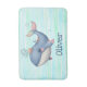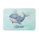 Diese personalisierte Badematte ist mit einem niedlichen Wal in kräftigen rosa und blauen Farbtönen ausgestattet, der spielerisch mit einem kleinen Hut schwimmt.