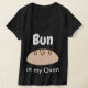 Feiern Sie Ihre Ankunft mit diesem niedlichen und lustigen schwarzen T - Shirt der Mutterschaft. Dieses Design enthält den Text "Bun in my Oven" in weißem Text mit einem Laib Brot. Passen Sie den Text an, was Sie möchten, indem Sie einfach auf die Schaltfläche Anpassen rechts neben dem Bild klicken.