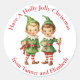 Diese niedlichen Weihnachtsaufkleber sind mit Vintag aussehenden Weihnachtselfen, die in festlichen Kostümen gekleidet sind, ausgestattet und wünschen allen ein Heiligabend. Personalisieren Sie diese, indem Sie Ihren Namen hinzufügen. Das ist ein schönes Geschenk-Tag!