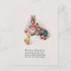 Niedliche Vintage Brötchen in Viktorianischer Kleidung mit farbigen Eiern und einem kleinen gelben Küken mit Ostergrüßen.