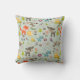 Ein Kissen mit einem niedlich wiederholenden Muster illustrierter Waldkreaturen. Rehe, Füchse, Kaninchen, Waschbären und Eulen. Set auf hellgrünem Hintergrund. Ein skurriles fantasievolles Design. Ich Liebe Muster wie diese mit einem spielerischen Gefühl von Spaß und Laune. Ich hoffe, es gefällt dir auch.