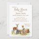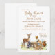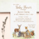 Perfekte Waldlandschaft Thema Baby Dusche Einladung! Für die besondere Ankunft des neuen Kleinen werden süße Waldtiere gewartet! Es ist geschlechtsneutral und perfekt für Junge, Mädchen oder Unbekannte oder für eine Überraschung gewartet! Passen Sie die Einladung mit Ihren Daten an. Ein Fuchs, Reh, Raccoon und Eichhörnchen sind niedlich um den Baumstumpf gewartet.