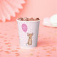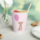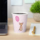 NewParkLane - Personalisierter Paper Cup für Kindergeburtstage, mit einer niedlichen Holzmaus in Aquarell, mit einem rosa Ballon, für Ihren Namen oder andere persönliche Texte, vor einem lustigen, Baby-Rosa, abstrakten gemusterten Hintergrund. Niedliches Design für die Geburtstagsparty junger Mädchen! Einfache Anpassung in Zazzle mit eigenem Text für ein personalisiertes Design. Alle Textstile, Farben, Größen können an Ihre Bedürfnisse angepasst werden. Karo diese Kollektion für passende Artikel aus! Haben Sie spezielle persönliche Designwünsche? Kontaktieren Sie mich bitte!