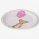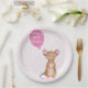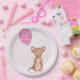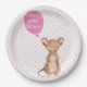NewParkLane - Personalisierte Paper Teller, mit einer niedlichen Holzmaus in Aquarellfarbe, mit einem rosa Ballon für Ihren personalisierbaren Text, vor einem lustigen abstrakten gemusterten Hintergrund. Niedliches Design für Babyduschen für ein kleines Mädchen. Einfache Anpassung in Zazzle mit eigenem Text für ein personalisiertes Design. Alle Textstile, Farben, Größen können an Ihre Bedürfnisse angepasst werden. Karo diese Kollektion für passende Artikel wie Papiertassen, Geschenktaschen, Aufkleber etc.!