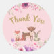 Niedliche Waldtiere Blumenrosa Danke Runder Aufkleber