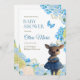 Niedliche Waldtiere Hirsche Blue Floral Baby Dusch Einladung