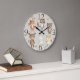 Diese bezaubernde Wanduhr besticht durch eine Waldlandschaft mit Kleintieren im Aquarellstil und Waldbäumen. Ein kleiner Fuchs, Raccoon und Bär werden im oberen Teil abgebildet. Ein Hirsch, ein niedlicher Hase und eine kleine Eule sind unten abgebildet. Die Zahlen sind in einem dunkelbraunen Schriftart gedruckt, wobei die 12, 3, 6 und 9 etwas größer gedruckt sind.