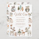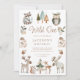 Whimsical Aquarellwald Tiere "Wild One" Thema 1. Geburtstagseinladung, mit Säuglingswaldtieren, Pilzen, Eicheln und Bäumen umgeben den Text der Einladung.