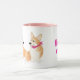 Machen Sie Ihren Tee oder Kaffee, die süßer mit dieser niedlichen Tasse mit Pembroke Welsh Corgi Friends Hattie und Leah, beide tragen ihre besten rosa Bandanas mit einem Knochenmuster 💕 Die Tasse kann mit Ihrem Namen oder Ihrer eigenen speziellen Nachricht personalisiert werden.