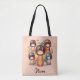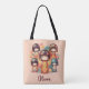 Diese personalisierte rosa Tasche enthält niedliche japanische kokeshi Puppen in Aquarellfarbe.