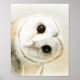 Die niedliche Watercolor Owl Tote Tasche ist mit einer gemalten Scheuneneule ausgestattet, deren Kopf seitlich geneigt ist.