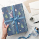 Fügen Sie Ihrem Urlaubsgeschenk eine individuelle Touch mit diesem Aquarellpapier hinzu. Das Wrapping Paper hat ein Muster gemalter Schneemänner, umgeben von Urlaubspalmen und Geschenken. Editierbarer (oder herausnehmbarer) personalisierter Text sagt Frohe Weihnachten! Liebe, Familienname. Die Farbe des Hintergrundblau kann je nach Wunsch geändert werden - gehen Sie einfach in den Bereich Design-Bearbeitung.
