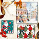 Niedliche Weihnachtsblätter mit verschiedenen Designs mit Weihnachtsmann, Schneemann, Weihnachtsstadt, Raute und festlichen Vögeln.
