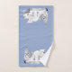 Ein niedliches Aquarellbild eines Polarbären auf einem verschneiten arktischen Pfählen und schneebedeckten Pinienbäumen illustriert ein wunderschönes Winterwunderland. Dieses Badetuch-Set eignet sich hervorragend für Kinder, die diesen Urlaub oder zu jeder Gelegenheit verbringen möchten.