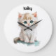 Niedliche Wasserfarbenküche mit blauen Augen Große Wanduhr