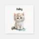 Bringen Sie jedem Katzenliebhaber ein Lächeln mit diesem zauberhaften Kätzchen. Stellt eine niedliche Tischumgebung für die Geburtstagsparty eines Kindes dar. Der Name kann geändert werden. AI unterstützte Grafik, die mit kommerzieller Lizenz erworben wurde. Artwork: PaintPixelCo