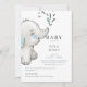 Einladung zur Wasserfarbenlephant Boy Baby Dusche. Weiße Umgebung.