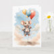 Schöne Aquarellmaus mit farbenfrohen Ballons, die durch den blauen Himmel schwebten und von Wolken umgeben sind. Blank Grußkarte zum Geburtstag, Jubiläum, neues Baby, danke, etc.