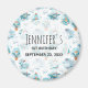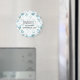 Geburtstags- oder Babyduschmagnet mit einem skurrilen Muster, in dem niedlich lächelnde Wale glücklich im Meer schwimmen.