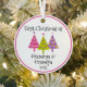 Das erste Weihnachten als Großvater oder Großmutter ist ein ganz besonderer Moment. Feiern Sie sie mit diesem niedlichen Ornament mit rosa, lila, gelben und grünen Weihnachtsbäumen. Sie können den Text "Großmutter und Großvater" ersetzen, wenn Sie gewollt haben, ihn einer neuen Tante, Schwester oder jedem anderen, den Sie gewollt haben, zu geben. Ändern Sie das Muster-Foto auf der Rückseite des Ornaments mit Ihrem eigenen.
