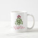 Dieses Design zeichnet sich durch eine niedliche Weihnachtswasserfarbe Mistleton individuelle Tasse mit einem whimsical whimsical whimsical rot und grün, Feriengrün Beeren, whimsical whimsical rotes Band Stil, botanische Winter Blätter Blatt Design, treffen Sie mich unter dem Mistlet, lustige lustige niedliche adorable Spaß, stilvolle trendige Kalligraphie Skript, einfache minimalistische Typografie Design, kreative Eleganz