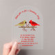 Diese phantastische Weihnachtsfeier-Party Einladung aus Acryl hat ein hübsches Paar von Kardinälen aus dem Norden. Der männliche Vogel ist hellrot mit einem roten Wappen auf dem Kopf und der weibliche Vogel ist eine bräunlich gelbe Farbe mit etwas Rot auf ihren Flügeln und Schwanz. Beide Vögel haben einen roten Schnabel. Die Vögel sind auf einem braunen Zweig stehend, der von festlichen roten Beeren bedeckt ist, was das Weihnachtskonzept besonders für Paare zu einem wunderschönen Weihnachtsgeschenk macht. Es gibt einen eigenen Text, sodass Sie dieses Design mit allen Party-Details personalisieren können.
