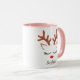 Niedliche, rosa und weiße, gürtelige Rentiergesicht mit antlers monogramm Kaffee-Tasse. Dies wäre ein Geschenk für sich selbst oder für sie, eine besondere Person, die Rentiere für die Ferienzeit Liebe. Personalisieren Sie es einfach, indem Sie einen Namen hinzufügen.