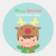 Niedliche Weihnachtsaufkleber für Rentierjunge Runder Aufkleber