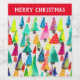 Niedliche, farbenfrohe Weihnachtsbäume, die in lebhaften Farben kichkische Baummuster schmücken. Aquarellbilder machen Weihnachten Spaß.