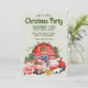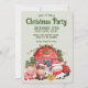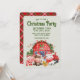 Diese individuelle Weihnachtsfeier-Einladung enthält eine niedliche Aquarellbilder eines Cartoon. Kleine Kleintiere sind in Weihnachtsmannmützen außerhalb eines Landhauses gekleidet. Der Hintergrund ist ein sanftes Weissgrün mit braunem Text.