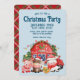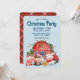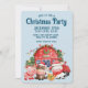 Diese individuelle Weihnachtsfeier-Einladung enthält eine niedliche Aquarellbilder eines Cartoon. Kleine Kleintiere sind in Weihnachtsmannmützen außerhalb eines Landhauses gekleidet. Der Hintergrund ist eine hellblaue Farbe.