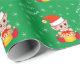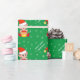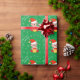 Niedliche Weihnachtself & Schneeflocken auf Grün Geschenkpapier