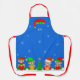 Niedliche Weihnachtself Squad & Poinsettias mit Schneeflocken auf der blauen Schürze. JOY-Text kann personalisiert sein.