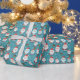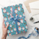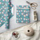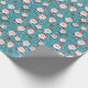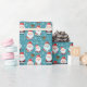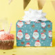 Niedliches Weihnachtsgeschenkpapier. Niedliche kleine Santas auf hellblauem Hintergrund.