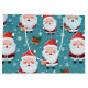 Niedlicher Weihnachtsbeutel für Ihren Urlaub. Niedliche kleine Santas auf hellblauem Hintergrund.