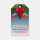 Dieses festliche Geschenketikett zeigt einen niedlichen Weihnachtsmann unter einem Weihnachtsbaum in einer schneebedeckten Winternacht. Passen Sie den Text auf beiden Seiten mit jedem Text an, den Sie für jemanden ganz besonderen wünschen.
