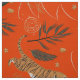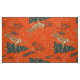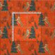 Niedliche Weihnachtsbäume und Tiger in einem nahtlosen Muster auf einem benutzerdefinierten orangefarbenen Hintergrund.