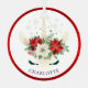 Niedliche Weihnachten Unicorn Holiday Personalisierte Ornamente zeigt ein prächtiges Blumenweihnachtsunkorn mit Poinsettias als Krone. Personalisieren Sie den Text mit Ihrem Namen, indem Sie ihn im Textfeld bearbeiten. Fantastisch für den Weihnachtsbaum, als Geschenke und Weihnachtsgeschenke. Entworfen von ©Evco Holidays www.zazzle.com/store/evcoholidays