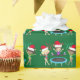 Diese wunderschöne Gymnastik Weihnachtsverpackung zeigt 3 niedliche Gymnastikmädchen, die Weihnachtsmannmützen tragen und eine Pose mit Bändern auf hübschem grünen Urlaubshintergrund halten. Die Blondine hält ein rotes Band, die brünetten springt auf ein Trampolin und das afroamerikanische Mädchen hält ein grünes Band.