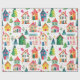 Niedliche Weihnachtshäuser, die so festlich und farbenfroh sind, schmücken diese Rolle von Packpapier. Vergnügungs-Szenen festlicher kleiner Zuhause im weißen Schnee, in winterlichen Gassen mit sternbedeckten Bäumen vermischt. Das Aquarellmuster hat einen Vintagen Ursprung mit einer Retro-Touch, die heute so beliebt ist.