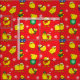Festliche Weihnachtsstoffe mit einem Muster von bezaubernden Babychicks mit Weihnachtsjumpern und Hüten. Die Kinder werden dieses gemusterte, rote und gelbe Hühnergewebe Liebe