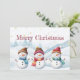 Mit dieser flachen Weihnachtskarte mit drei bezaubernden Schneemännern in farbenfrohen Schals und Hüten gegen eine schneebedeckte Winterlandschaft können Sie warmen Winterjubeln schenken. Die Vorderseite liest Frohe Weihnachten in festlicher, roter Schrift, während die Rückseite Ihre personalisierte Urlaubsbotschaft beinhaltet: Von unserer frostigen kleinen Crew zu Ihrer - möge Ihr Urlaub fröhlich und hell sein! Herzliche Umarmungen und Urlaubswünsche. Eine charmante Wahl für Freunde, Familien und Mitarbeiter, die spielerische Urlaubspläne für Lieben entwerfen.
