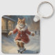 Niedliche Weihnachtskatze Skaten spielend Schlüsselanhänger