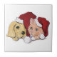 Niedliche Weihnachtsleder Welpe und Orange Tabby Fliese